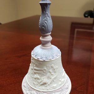 Handmade in Valencia Spain, this elegant bell named "Eternal Love" expresses the true beauty of the sacred bond of spouses. Lladró creates delicate detailing of this 1993 bell that remains beautiful to this day. It features soft gradient lilac tones with white porcelain. It measures approximately 6x3.5 inches. Regardless of the occasion, this limited edition bell will be perfect! Perfect condition. Packaged with care to get to you safely.