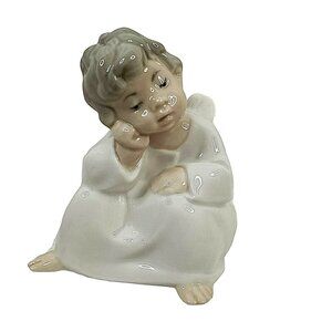 Lladro 1985 Sitting Angel Porcelain Figurine Hand Painted Collectible Spain