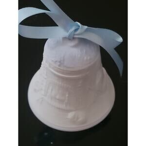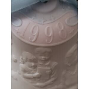 Lladro Bell 1998 Made in Spain White with Blue and Pink Christmas Blue Ribbon