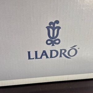 Charming Lladro figurine of a sleeping baby with a bird. Features soft cream and pink hues.