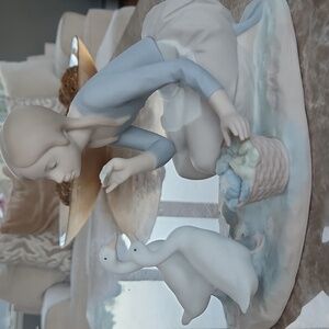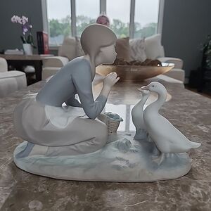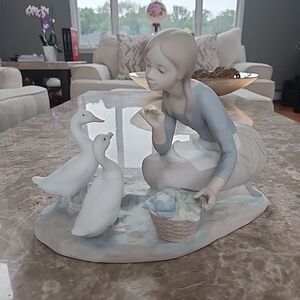 Delight in this exquisite porcelain figurine featuring a serene scene with a girl and ducks. The soft blue and white hues add a touch of elegance to any home decor. Lladro, 9x6x5 in. Great condition, no box.