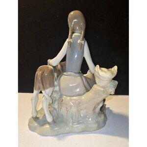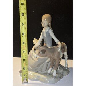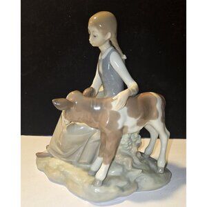 Lladro Girl with Calf, Cow 4813 Retired Rare vintage 8"
