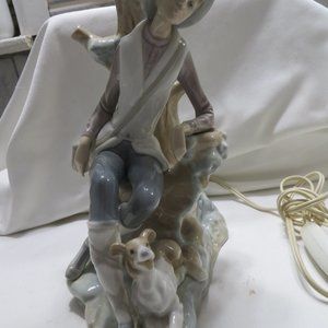 Lladro José Luis Alvarez Shepherd w/ Dog Lamp