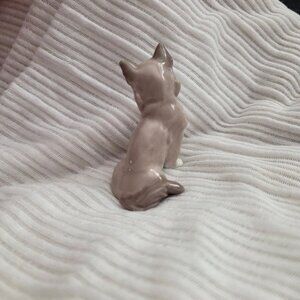 Vintage Lladro “Miniature Cat” figurine 5308. Glazed porcelain, made in Spain and dated 1985. This figurine was retired in 1993. It was sculpted by Antonio Ramos and stands approx. 2.25” tall. There is chipping in the glaze on the tips of the ears, but it is positioned more toward the backs of the ears and isn’t as noticeable from the front. It does make the right ear appear a little flat on top due to the missing glaze, but the material underneath doesn’t appear chipped. Otherwise, the figurine is in good condition.