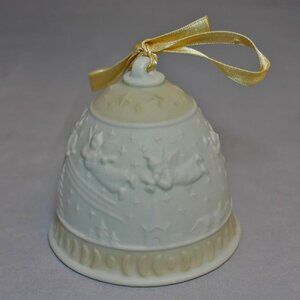 Lladro NIB VINTAGE set of 7 Christmas Bells. 1987 Bell, #5458, 1988 Bell, #5525, 1989 Bell, #5616, 1990 Bell, #5641, 1991 Bell, #5803, 1993 Bell, #6010, 1996 Bell, #16297. All bells are matte porcelain finish. White, pink, blue and green. Hand painted. Hanging ribbons included. Boxes in good condition. Made in Spain by Jose Roig. 3"Hx3"W.