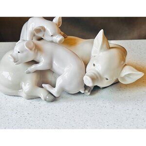 Admire the charming craftsmanship of this Lladro porcelain figurine, "Piggy Pile," showcasing delightful piglets at play. Made in Spain.