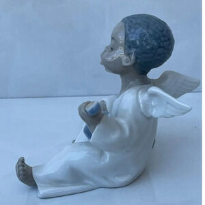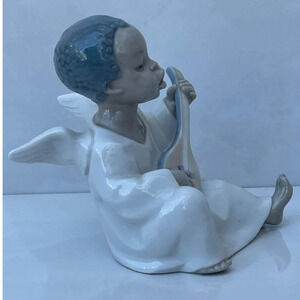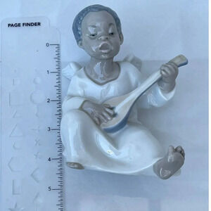Lladro Rare Spanish Glazed Porcelain with Mandolin Angel Decor White Black Sz 4.