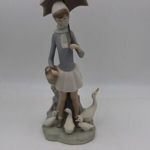 Lladro Vintage Girl With Geese Porcelain Figurine 12” Umbrella Spain Collectible