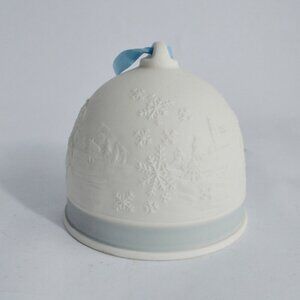 Lladro White Blue Embossed Bell Ceramic Ornament