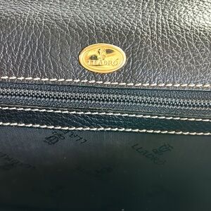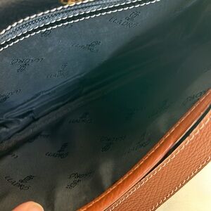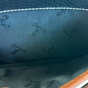 Lladro black and brown small adjustment strap crossbody leather bag purse