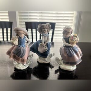 Lladro made in Spain porcelain figurines lot of 3 new girls with flowers