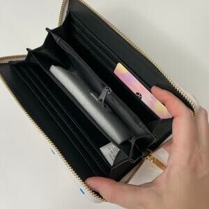 Large white wallet with cute llamas, cactus, mountains, flowers, and rainbows.