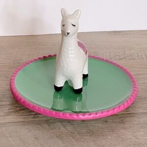 Llama Cute Pink & Green Ceramic Jewelry Trinket Dish NWOT