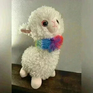 1616 Holding Cream Llama Alpaca Plush Rainbow Collar Eyes Stuffed Animal Toy Smoke free pet free home Gently used