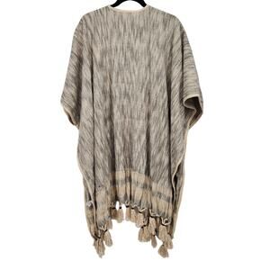 Llani Anthropologie Pilar Wrap Boho Cream Black Fringe Tassle Open Women OS