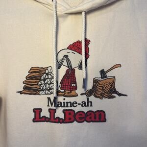 Llbean x peanuts women’s xs snoopy Maine-ah Mainer pull over cream hoodie