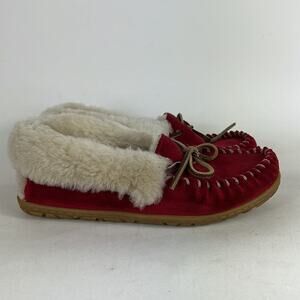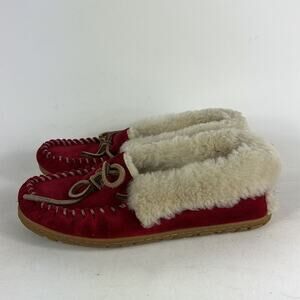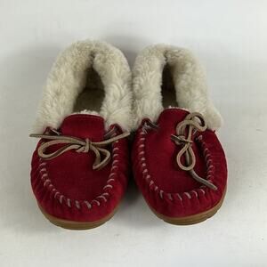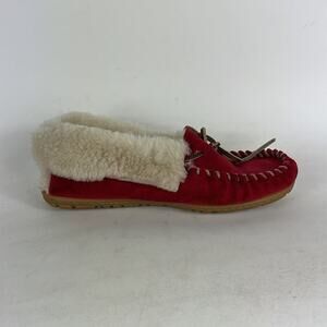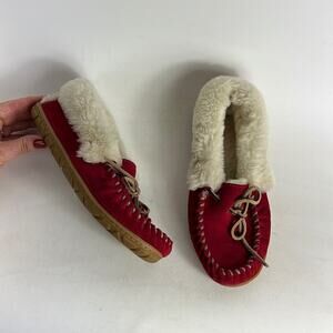 Llbean wicked good warm slippers us women’s size 5 red suede shearling lined