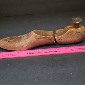 The Lloyd & Haig Cobbler Shoe Form Mold 8 2 is a rare and valuable antique tool for crafting shoes. This vintage wood mold features a unique knob sizer expander, making it a distinctive piece for collectors or those interested in traditional shoe-making techniques. Its craftsmanship and design demonstrate the quality and attention to detail that was common in industrial molds from the past.