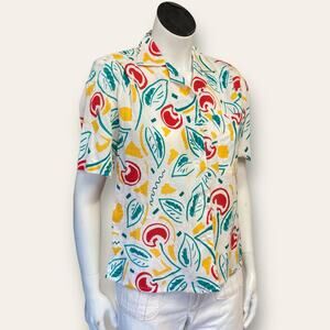 Lloyd Williams petite, cherry shirt, with yellow markings, size 8, 100% cotton