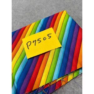 Brighten your sewing projects with this vibrant rainbow-striped cotton fabric. It's like happiness in fabric form, ready to be stitched into your next masterpiece.
