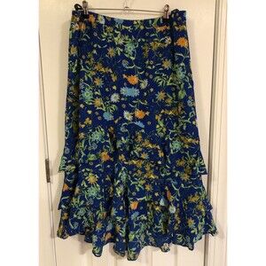 Línea By Louis DellOlio Wild Flower Tiered Ruffle Skirt Blue Floral Large L