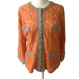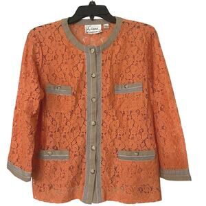 Línea by Louis Del Olio Vintage Coral Sheer Floral Lace Button Front Blouse SM