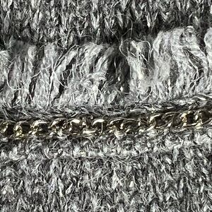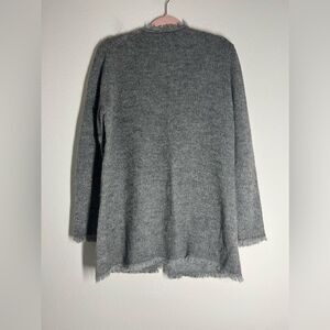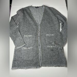 Léo Guy Sleeve Fringe Knit Cardigan Sweater Lurex Heather Grey Made in France Size L Wool, Alpaca, Cashmere