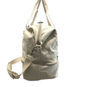 This versatile cream canvas overnight bag from LO & SONS is perfect for short trips. With ample space for your essentials, it combines style and functionality effortlessly.
