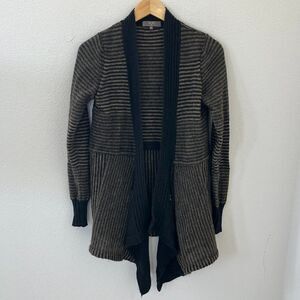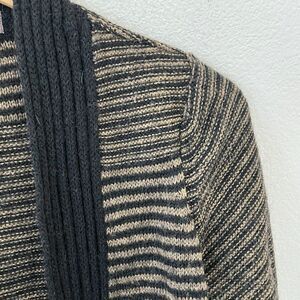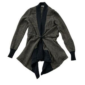 Lo.Ri. gray and tan striped open cardigan with drawstring tie waistband.