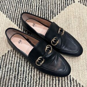 Classic black loafers. Worn once. In new like shape.