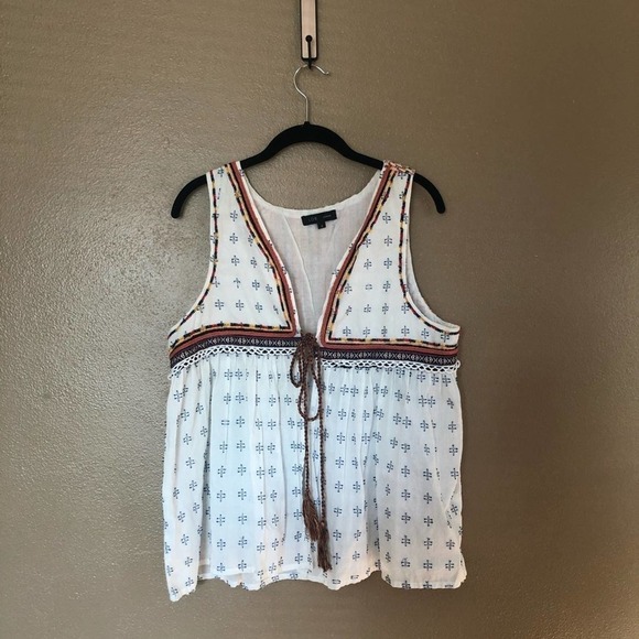 Lob Front Tie Embroidered Tank Top / Vest Size L (3)