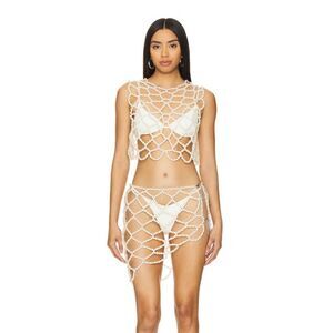 Loba Paola Skirt in Ivory & Silver Pearl mini swim resort Revolve M/L