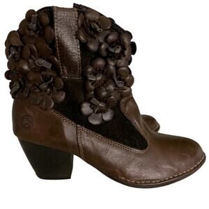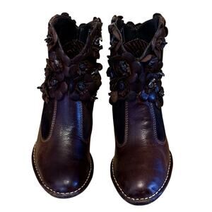 Lobo Solo Women's Ankle Boots Genuine Bovine Leather Flower Design Size 6