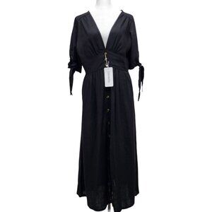 LocachyBuffalo Black womens Mariposa V Neck Button Front Dress Linen Size S