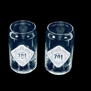 Local 701 Union Operating Engineers Set of 2 Beer Can Shape Glass Tumblers 16 oz