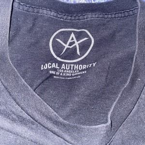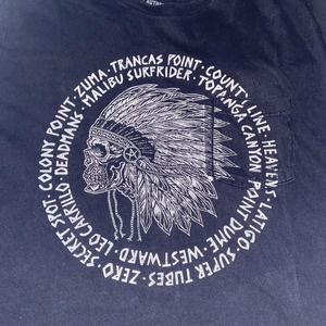 Local Authority Los Angeles Skull w/ Braid Feathers Headress T-Shirt Sz XL FUFC . Pre own, distressed and shows signs of use. This Local Authority Los Angeles T-Shirt features a stunning Indian skull design with braided feathers headdress in black color.