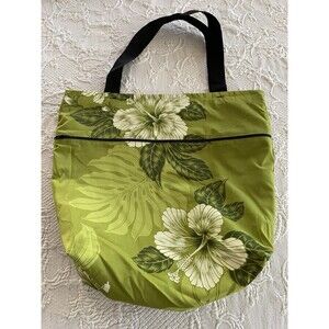 Local Design Hawaii Reversible Tote Flowers Leaves Large Zipper Bag Souvenir USA