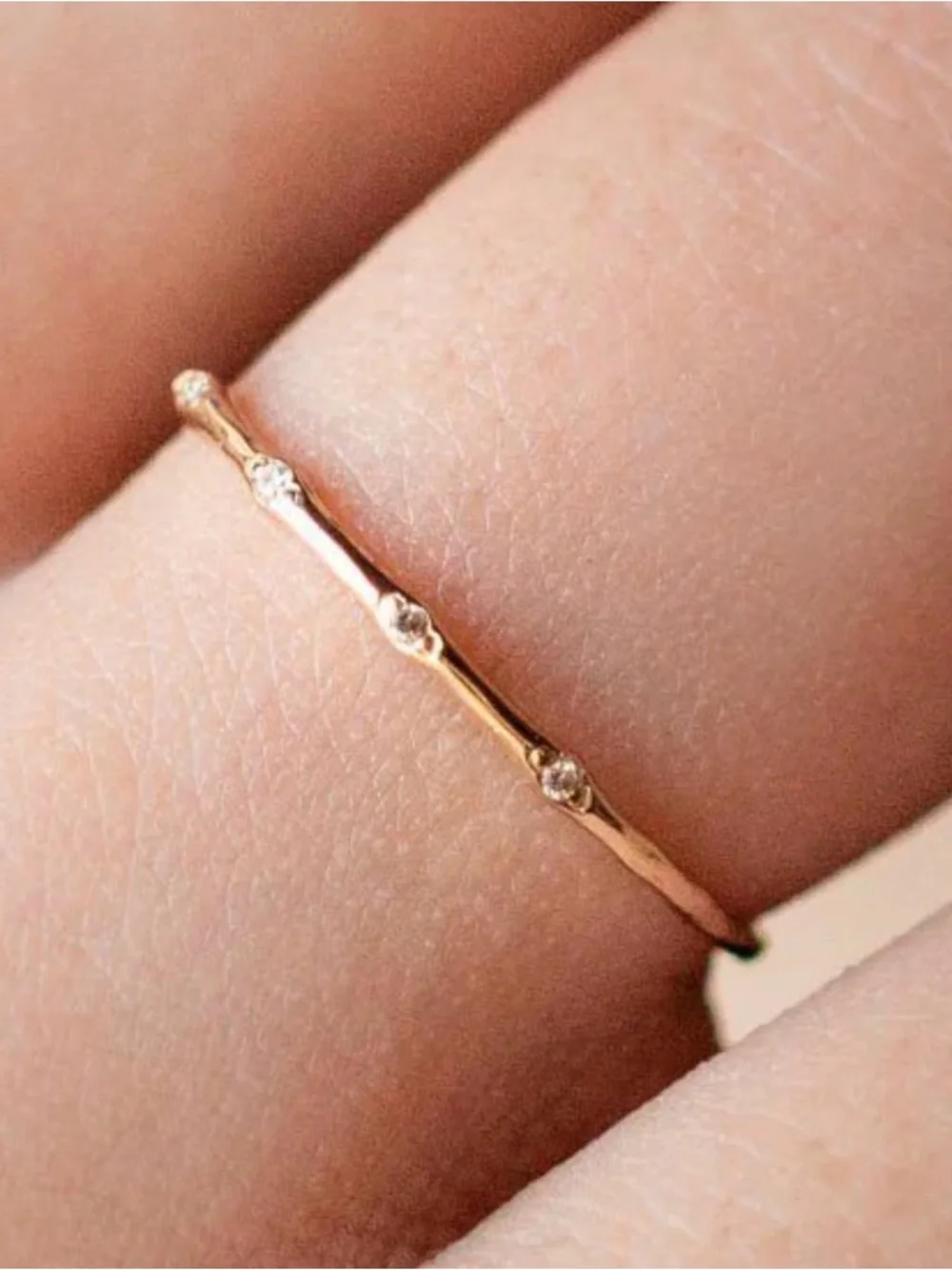 Elegant gold stackable ring. Lightweight design for everyday wear. Perfect as a single piece or layered with other rings. Size 6.
