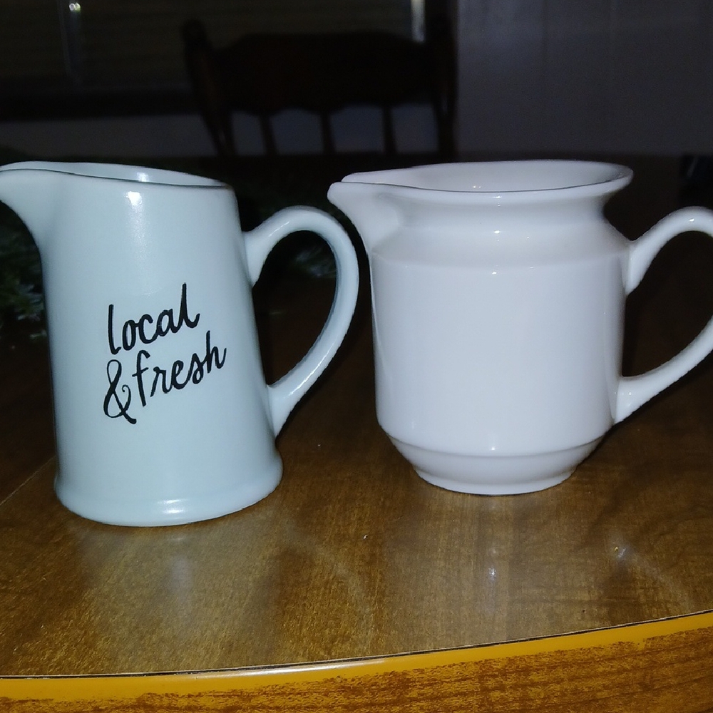 Enhance your dining experience with this elegant cream pitcher set. Featuring a stylish 'Local & Fresh' design, these pitchers add a touch of charm to any table setting.