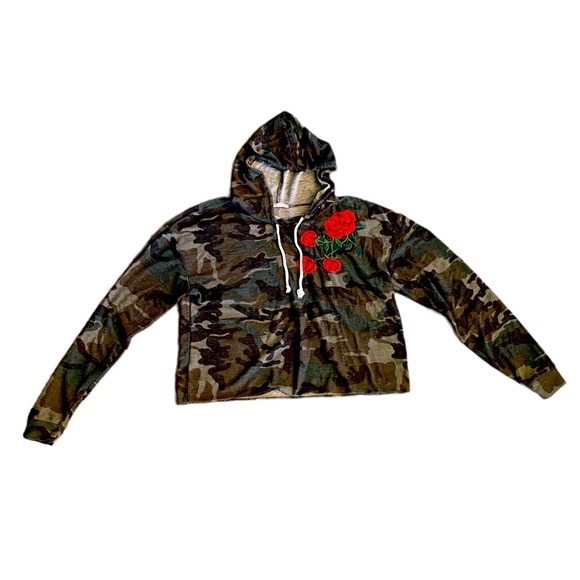 {Local Lab } Camo and Roses Crop Top Lined Hoodie