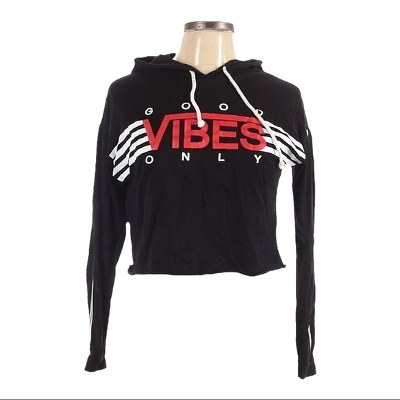 Local Lab Good Vibes Only Crop Pullover Black Streetwear Hoodie Size S