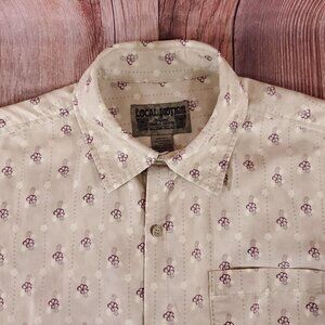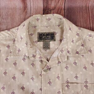 Local Motion Original Aloha Mens Size Medium Beige Floral Hawaiian Short Sleeve Button Up Shirt