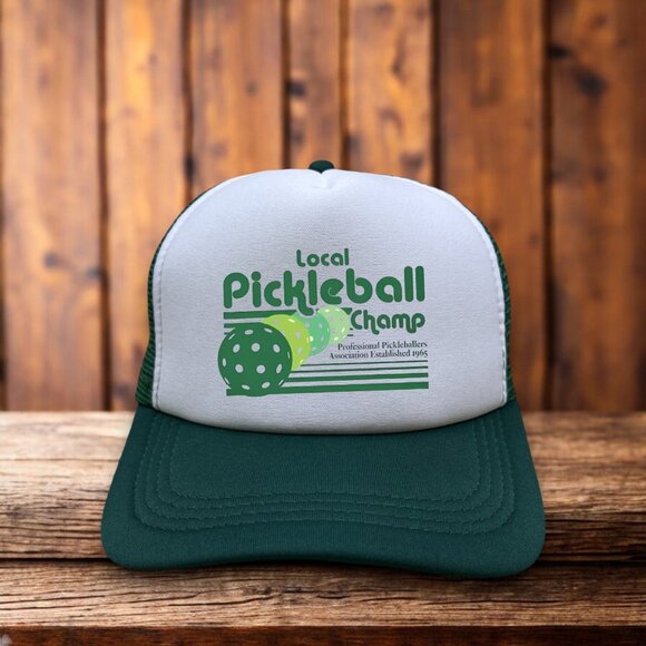 Local Pickleball Champ Mens Trucker Hat Green Funny Parody Baseball Cap