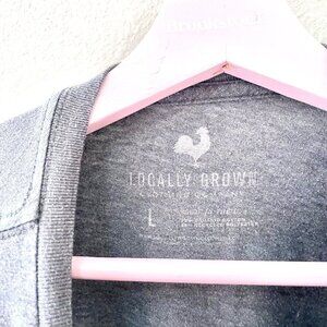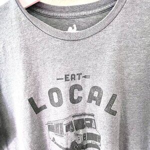 This is a gently used Locally Grown Eat Local Grey Short Sleeve Graphic Tee Size L. In very good condition. Has minor signs of wash wear throughout. See all pics for condition.