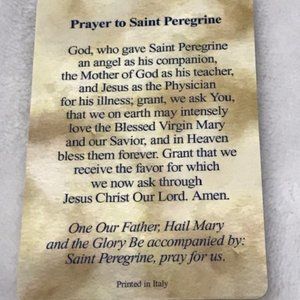 Both of these cards were collected by me from the actual locations of both of the 2 Saints shrines. Relics are items directly associated with the events of Christ's life or the physical remains of a Saint (a bone, a hair, skull, a limb, etc.). These cards are 3rd Degree Relics - which means 'any object that has been in contact with a first- or second-class relic'. The white cloth on the cards within the red rings were touched directly to the relics St Anthony (Patron St of Miracles) and to St Peregrine (Patron St of Cancer). Therefore, these cards are intended to carry the energy of the Saints to connect you in prayer, but also with the energy from these very sacred site where people go to in prayer to these specific Saints daily.