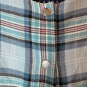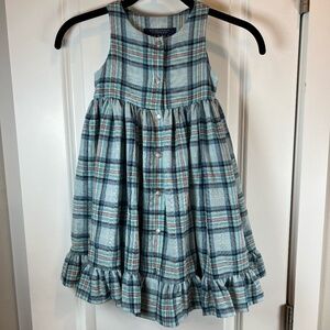 Lochcarron of Scotland Diana Princess of Wales Memorial Tartan Wool Plaid Sleeveless Dress Blue Snap Front Ruffle Pleats