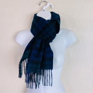 Lochmere Cashmere Navy/Green Tartan Plaid Scarf 12” x 59”