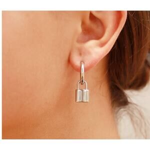 The Padlock Stainless Steel Earrings are the key to any outfit! Crafted from high quality 18K Gold PVD as well as stainless steel, these earrings feature a shinning padlock charm to unlock any style. These edgy earrings are sure to make a statement in any store or personal collection.