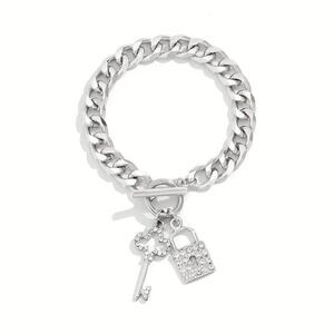 Stylish Lock & Key Diamond Cuban Chain Bracelet