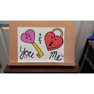 Lock & Key Kawaii You Me Romantic 9x12 Inch OOAK Original Acrylic Painting